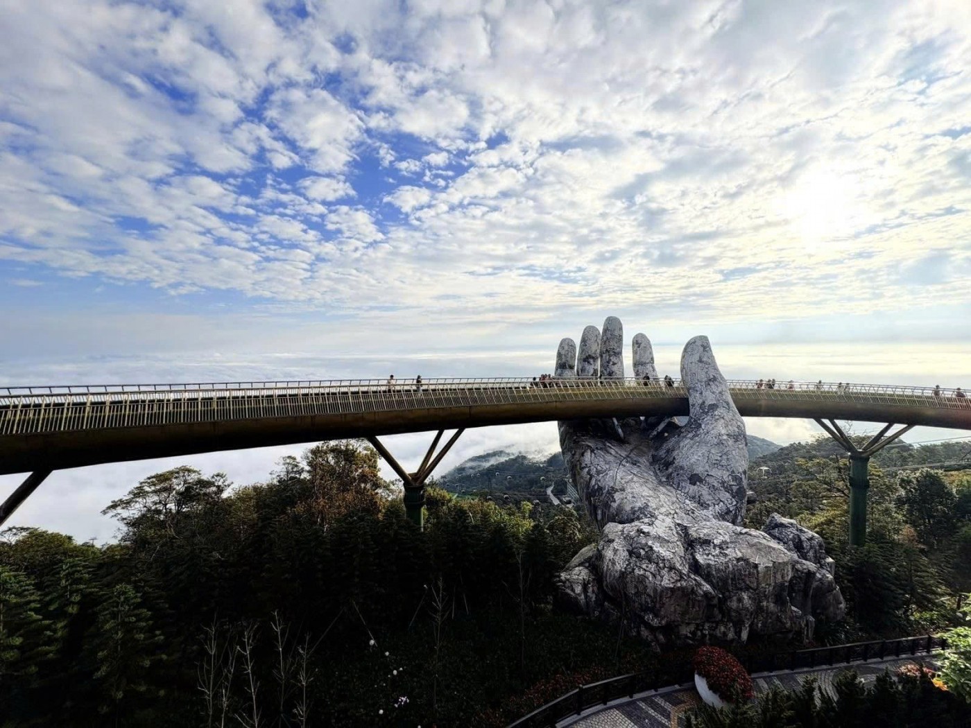 Bà Nà nhìn từ cáp treo là bức tranh hoàn mỹ, đầy màu sắc với bốn bề mây phủ điệp trùng. Ngồi trên carbin cáp treo lơ lửng giữa lưng chừng mây, nhìn xuống bạt ngàn núi rừng phía dưới du khách sẽ được chiêm ngưỡng cảnh núi rừng, thác nước… rất hùng vĩ, ngoạn mục.